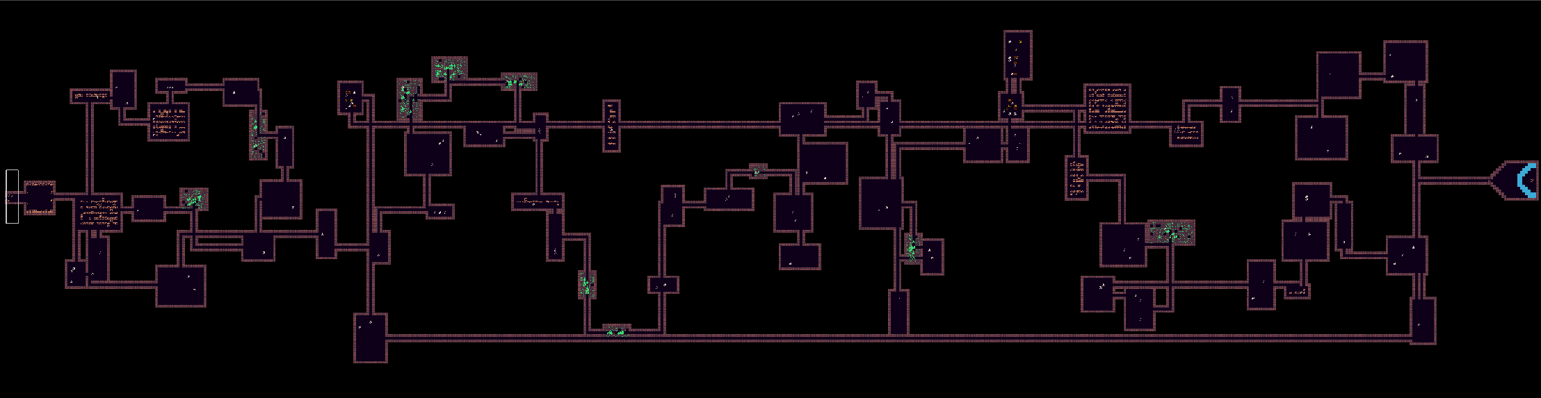Corridors are finally placed to link all rooms together. Rooms are sorted roughly on the x axis so the dungeon progresses left - right.